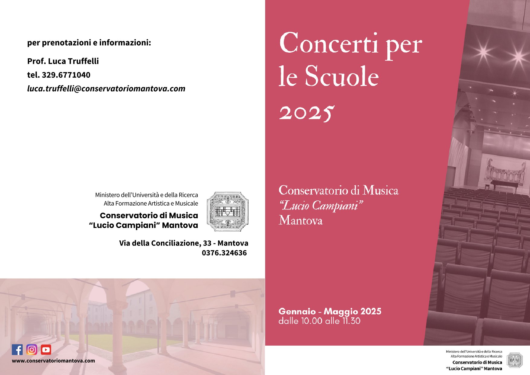La rassegna si inserisce nelle iniziative culturali del Conservatorio per il territorio, che ha visto Mantova e, per il biennio 2025-2026, ben 10 comuni mantovani ricevere la qualifica di “Città che legge” assegnato dal centro per il Libro e la Lettura del Ministero della Cultura.