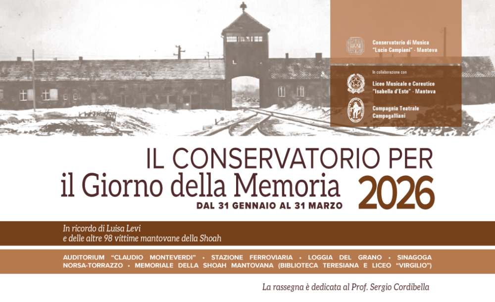Si è aperta martedì 27 gennaio la rassegna dedicata alla Giornata della Memoria con la ricorrente cerimonia istituzionale presso l’Auditorium “Claudio Monteverdi” del Conservatorio di Musica “L. Campiani” di Mantova, che ha visto partecipi le principali autorità istituzionali, della Città insieme alla comunità accademica e musicale del Conservatorio, dedicata al ricordo delle vittime della Shoah e delle persecuzioni nazifasciste.