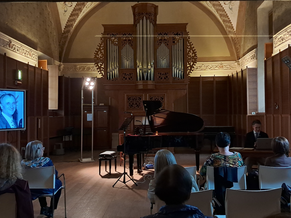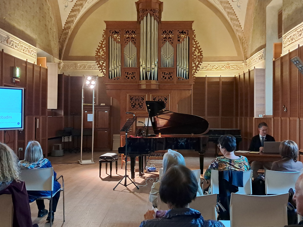 Il funzionario di biblioteca dott. Davide Montaldi, che negli scorsi anni ha riordinato e catalogato il fondo appartenuto al m° Sabbadini, che fu docente e direttore del Conservatorio, ha presentato l’opera, proponendo per la prima volta molti documenti tratti dall’archivio della biblioteca e tracciando la genesi della sonata all’interno della produzione del compositore e della contemporanea letteratura per viola.