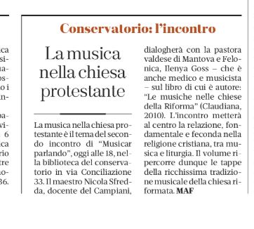 Nicola Sfredda, Le musiche nella chiese della Riforma (Torino, Claudiana, 2010) in dialogo con Ilenya Goss.