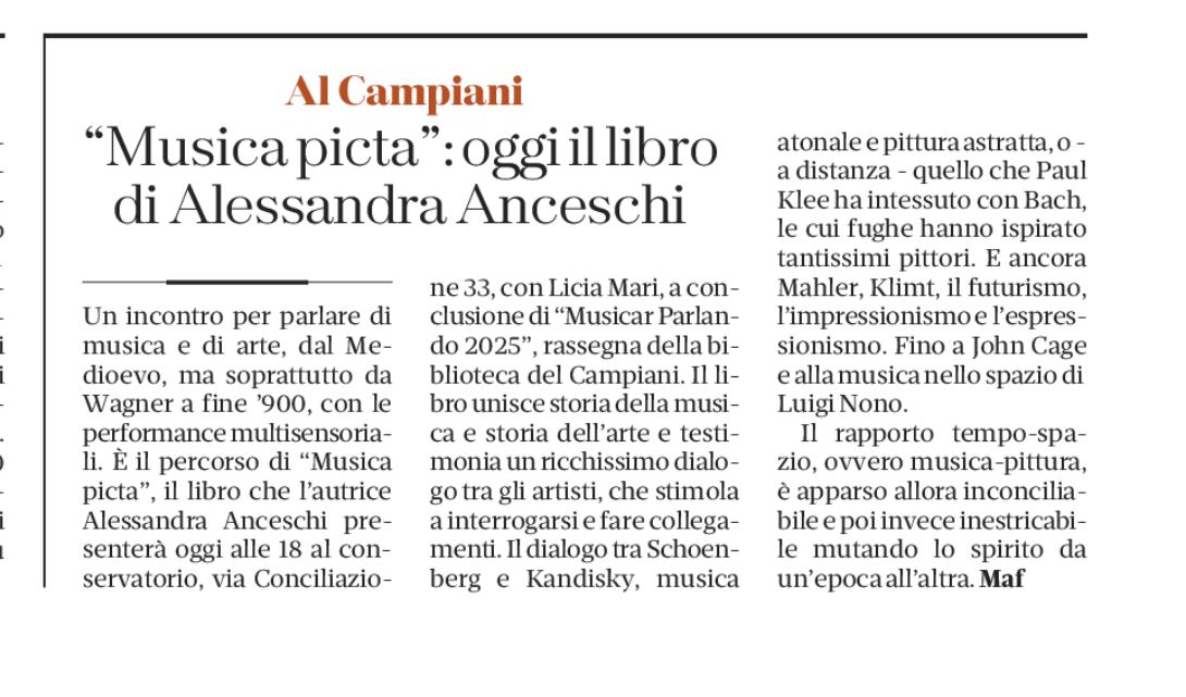 Alessandra Anceschi, Musica Picta. Musica e Arti Visive a scuola (Trento, Erickson, 2019) in dialogo con Licia Mari.