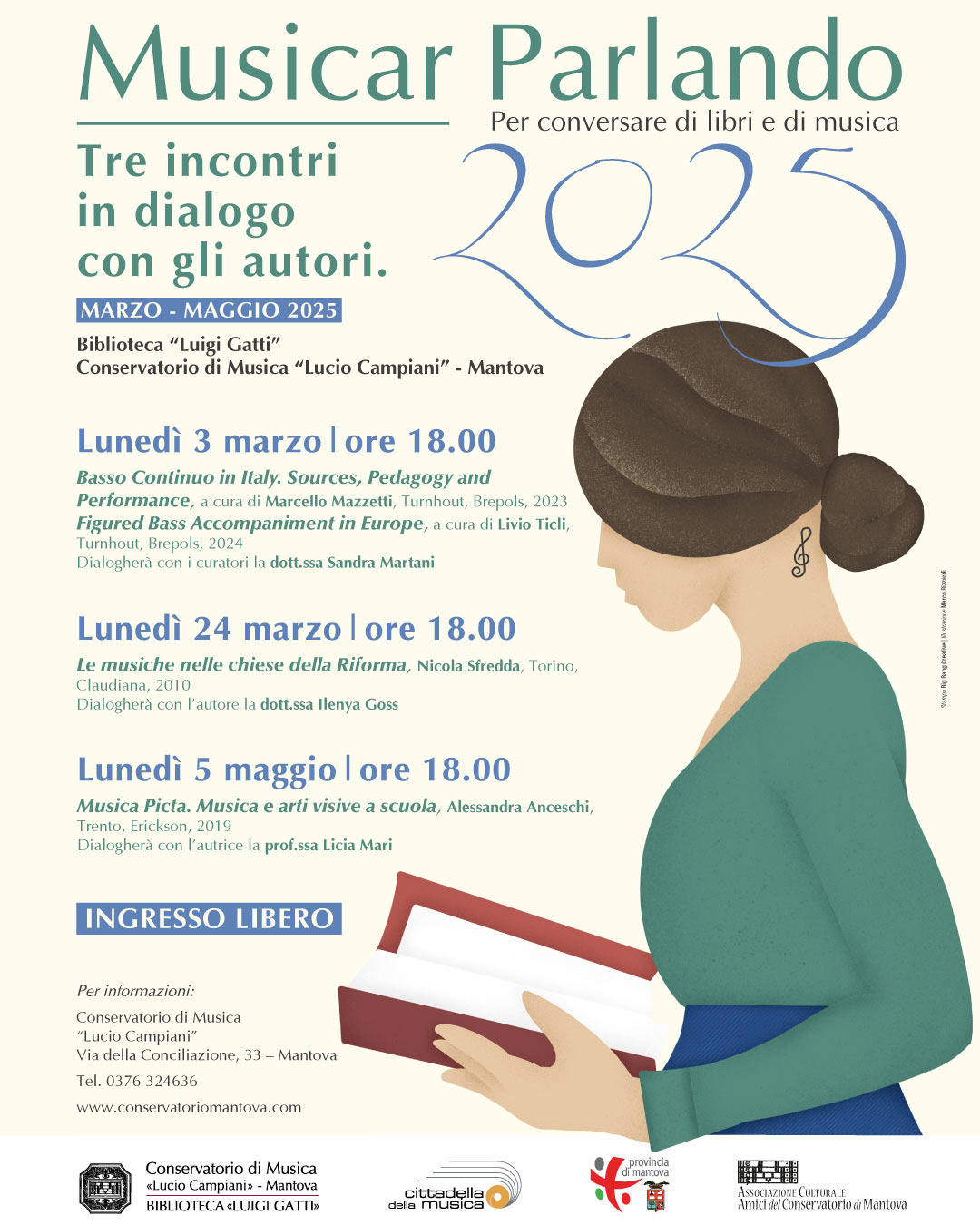La rassegna si inserisce nelle iniziative culturali del Conservatorio per il territorio, che ha visto Mantova e, per il biennio 2025-2026, ben 10 comuni mantovani ricevere la qualifica di “Città che legge” assegnato dal centro per il Libro e la Lettura del Ministero della Cultura.